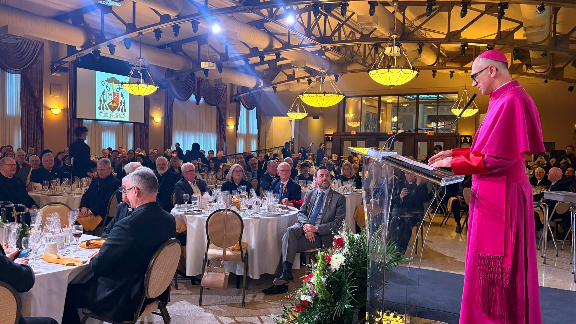 Nowy ordynariusz skierował słowa wdzięczności do dotychczasowego biskupa Hamilton i administratora apostolskiego, bp. Douglasa Crosby’ego OMI, przywołując jego wieloletnią posługę w diecezji. Wspomniał również biskupów seniorów: bp. Anthony’ego Tonnosa i bp. Matthew Ustrzyckiego, a także wyraził radość ze współpracy z biskupem pomocniczym, bp. Wayne’em Lobsingerem.