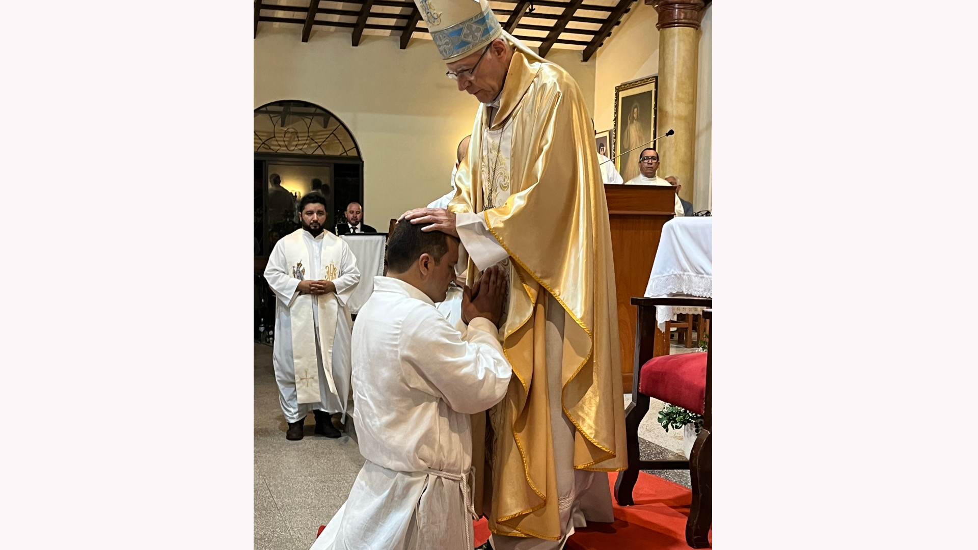 Na uroczystość święceń przybyło 13 kapłanów – michalitów z różnych parafii w Paragwaju i Argentynie, na czele z ks. prowincjałem Stanisławem Nowakiem, wikariuszem generalnym ks. Krzysztofem Poświatą, oraz wszyscy klerycy z seminarium. Obecnych było kilkadziesiąt sióstr michalitek z Kontynentu Nadziei: profesek, nowicjuszek i postulantek wraz z matką generalną Maksymilianą Ciepała i byłą przełożoną generalną, która zakładała misję w Paragwaju s. Natanaelą Bednarczyk. Nie było zabraknąć na uroczystości najbliższej rodziny diakona: matki i braci. Kościół parafialny po brzegi wypełnił się wiernymi, którzy radosnym śpiewem i gorliwą modlitwą dziękowali Bogu za dar nowego michalickiego diakona.
