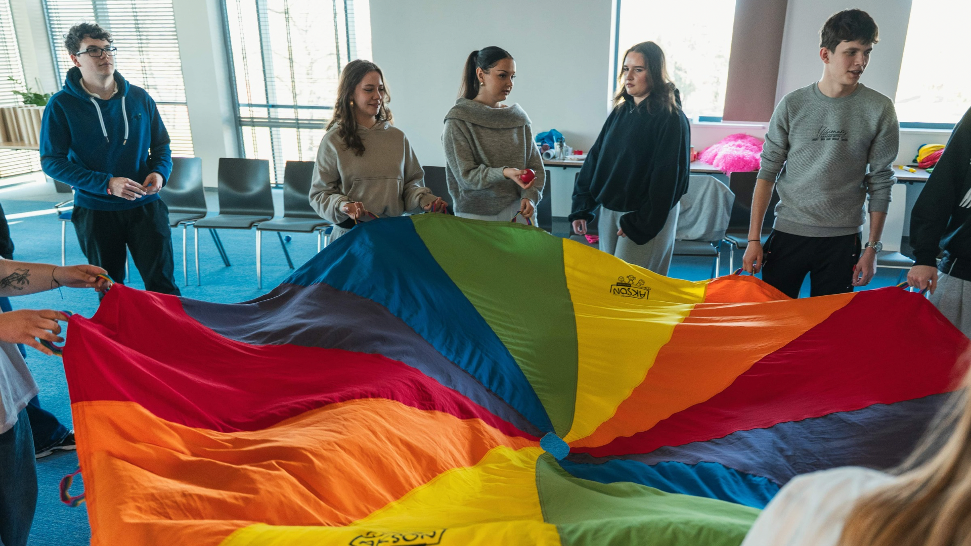 Nie zabrakło również przestrzeni na integrację – sami przygotowywaliśmy i prowadziliśmy różnorodne zabawy, które pomogły nam lepiej się poznać i jeszcze bardziej zbudować relacje.